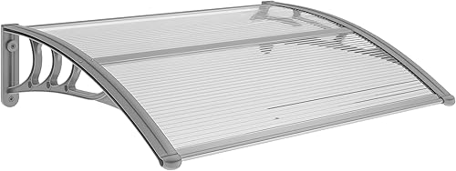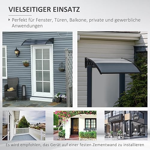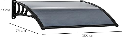 Outsunny Vordach für Haustür 100 x 75 cm Pultbogenvordach Überdachung aus Aluminium und Polycarbonat Pultvordach mit UV Schutz Haustürvordach für Balkon, Sonnenschutz, Regenschutz, Schwarz