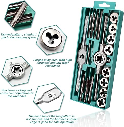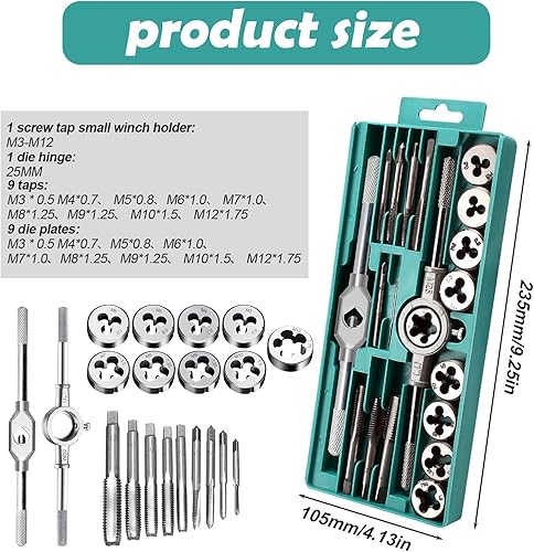 WIYETY Gewindeschneider Set Gewindebohrer Werkzeug: 20 Tlg Gewinde Schneider Bohrer Werkzeug Set, M3 - M12 Gewindeschneidsatz, Hohe Präzision Gewindeschneider Werkzeugkasten Gewindeschneid Satz