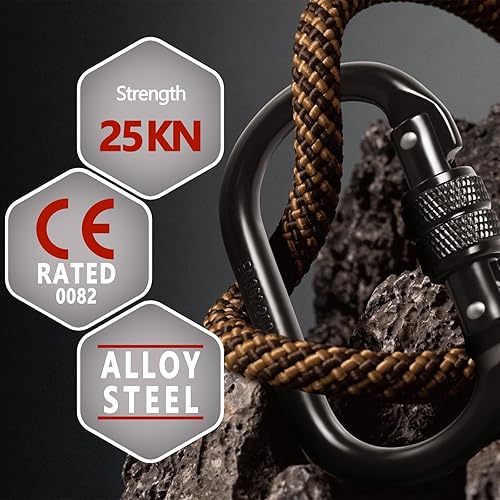 2 Stück Karabinerhaken 25KN, O-förmige Karabiner Edelstahl Groß Mit Schraube Rostfrei Mit Verschluss Karabiner Tragfähigkeit für Yoga Hängematte Klettern Camping Schaukel Carabiner Hooks