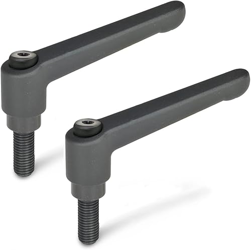 Ganter Normelemente | Verstellbare Klemmhebel mit Gewindeschraube - GN 300-63-M8-12-SW | Grifflänge: 63mm | Schraube Stahl brüniert | Griff Zink-Druckguss schwarz, kunststoffbeschichtet | 2 Stück