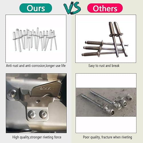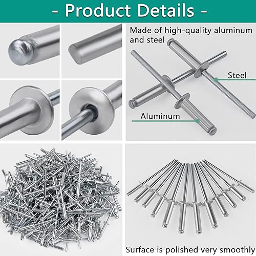 250pcs Stück Alu Blindnieten Sortiment Popnieten Set,Pop Nieten Stahlniete, 6 häufig verwendeten Größen Silber Aluminium Blindnieten (Silver, BOX SET-A)