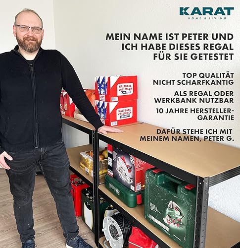 KARAT Schwerlastregale für Garage, Keller, Werkstatt - Steckregal - Weitspannregal - Lagerregal - Kellerregal - Eckregal - Reifenregal - Gitterregal (Verzinkt, 30 x 70 x 150 cm)