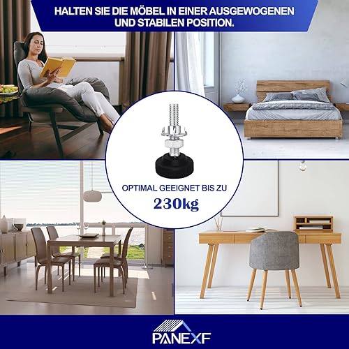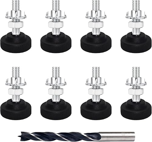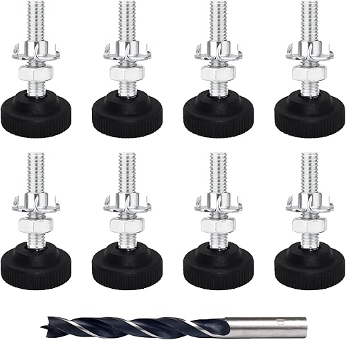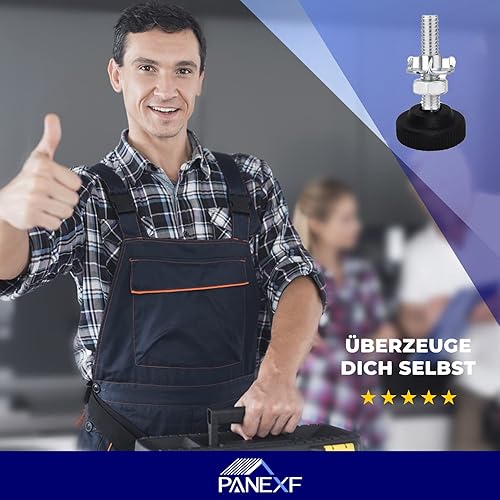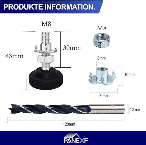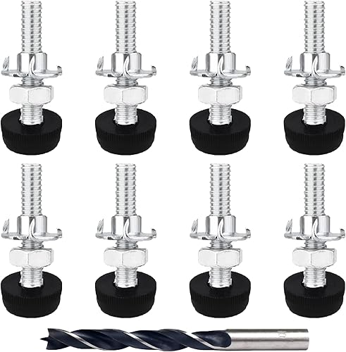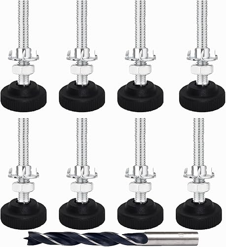 Panexf Verstellschraube 8 Stück Möbelfüße Verstellbar Metall M8 x 50 mm Stellfüße Füße für Möbel, Regulierschraube Justierschraube mit Einschlagmuttern,Kontermuttern und Metallbohrern