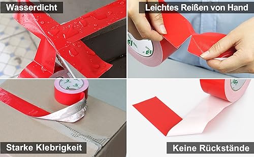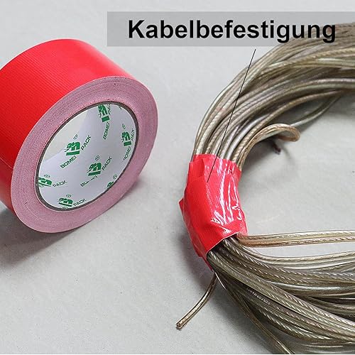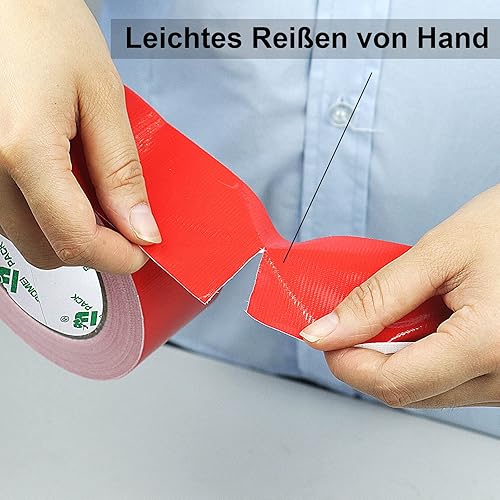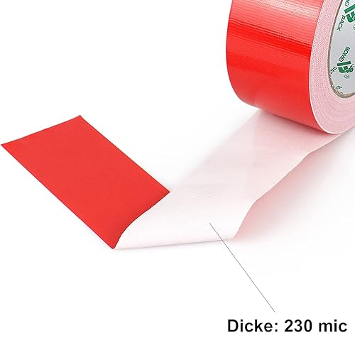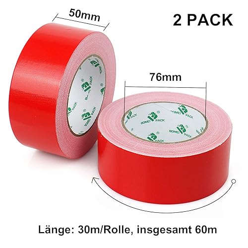 BOMEI PACK Premium Gewebeband 2 Rollen 50mmx30m Rot Panzertape mit exzellenter Klebkraft, UV-beständig, wasserfestes, Gewebeklebeband zur vielseitigen Anwendung