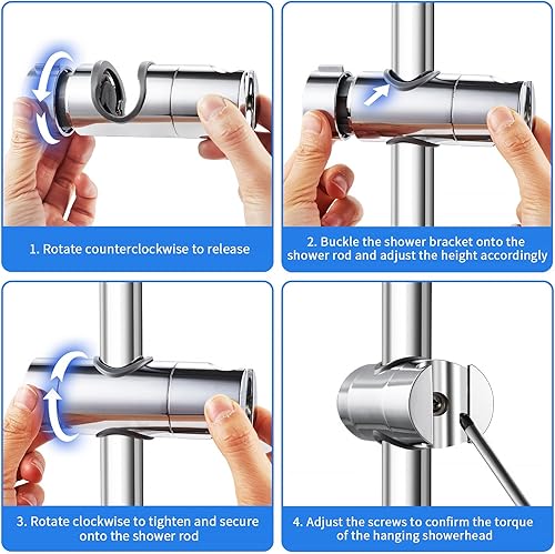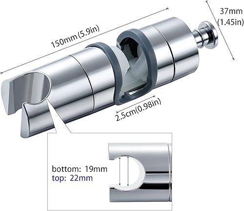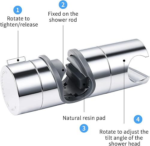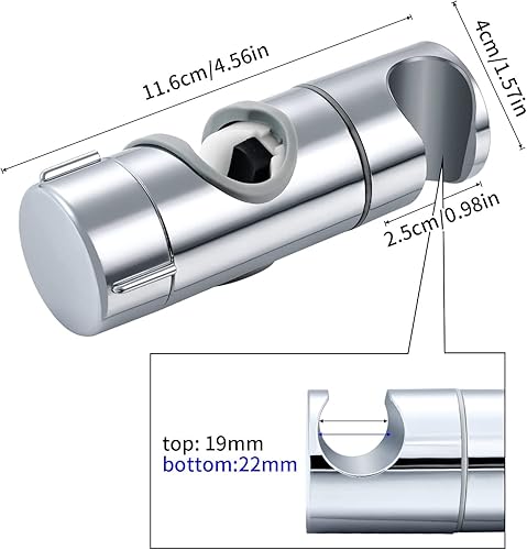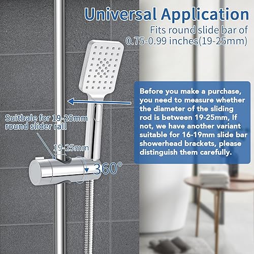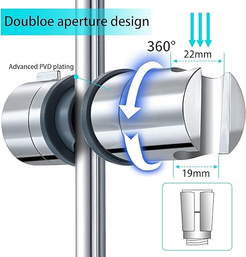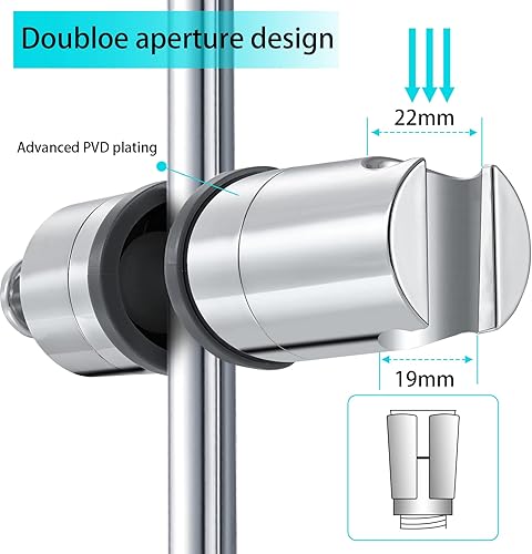 Joyoldelf Universal Handbrause Halterung, verstellbar Duschhalterung, 360° drehbar Brausehalter für Slide Bar 19-25 mm Außen Durchmesser, ABS Grade Kunststoff, Verchromt