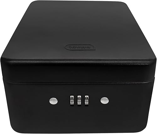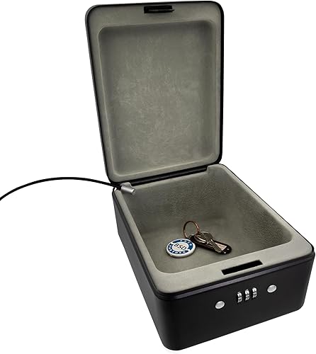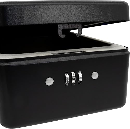 Idena 50119 - Sicherheitsbox aus Stahl, schwarzer Tresor mit Zahlenschloss und Sicherungskabel, ca. 20 x 15 x 6,5 cm