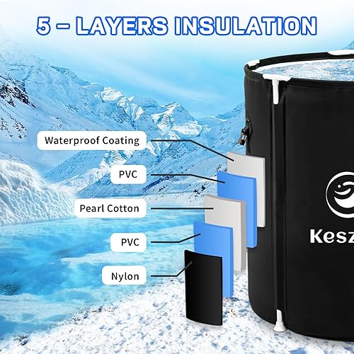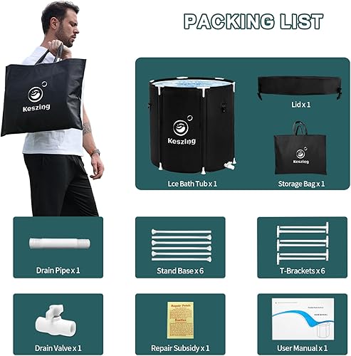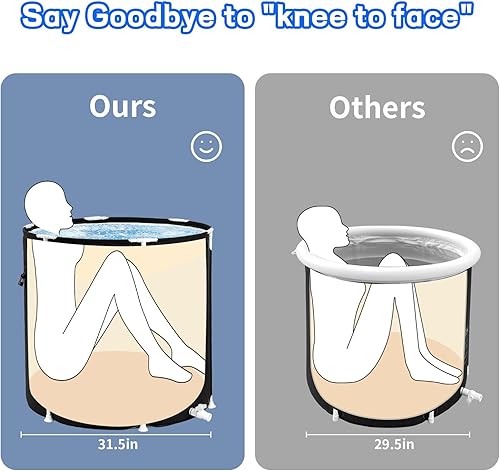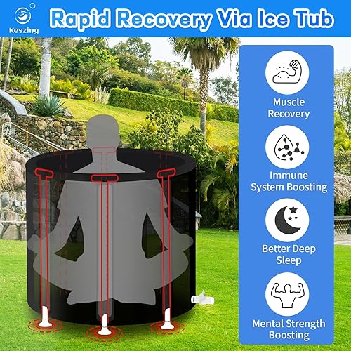 Keszing Faltbare Badewanne Eisbad Aufblasbare Badewanne Erwachsene Eisbaden Tonne Faltbare Ice Bath Tub Freistehende Eistonne Faltbare Badefass Wanne Eisfass Eisbaden (schwarz, Oval 100x65x65cm)