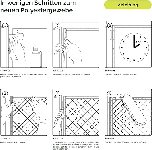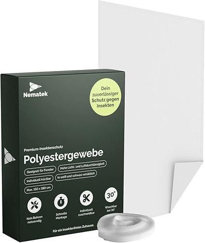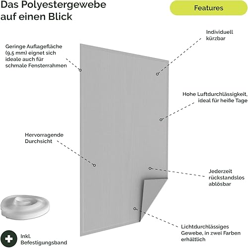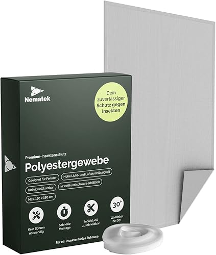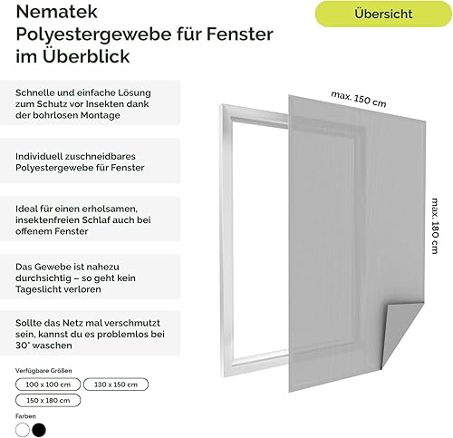 Nematek Polyester Fliegennetz Fenster - Fliegengitter Fenster ohne Bohren - Fliegengitter zum Kleben - individuell zuschneidbar - Fliegengitter (Schwarz, 130x150 cm)