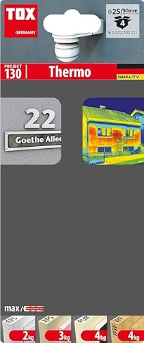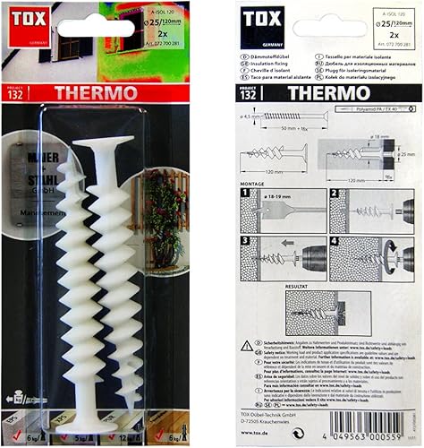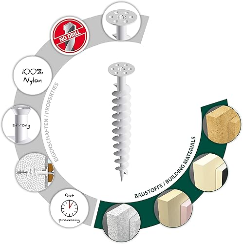 TOX Dämmstoffdübel Thermo 50 mm, Dübel für Dämmstoff ohne Vorbohren oder Spezialwerkzeug, verhindert Wärmebrücken, für EPS, XPS 20, PUR und Holzfaserplatten, 50 Stück im Karton, 072100221, Weiß, 50mm