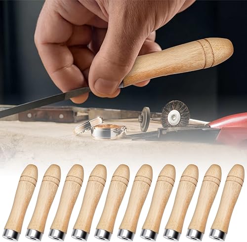 JLNGTHONG 10 Stück Feilenheft, Holzgriff mit Starken Metallhalsbändern Schubkarrengriffe Holzgriffe Lang11cm und 6 mm Loch für Feilen, Raspeln und Meißeln