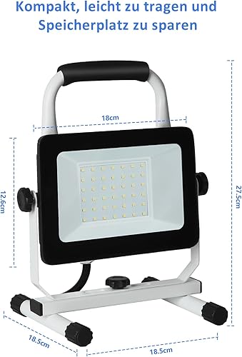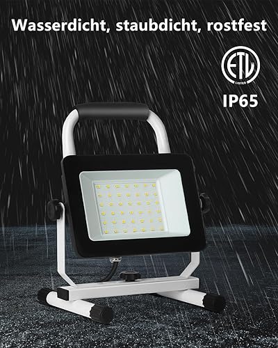 JOYDEER 4000 Lumen LED Baustrahler Arbeitsleuchte mit Ständer, 40W Wasserdichte Tragbare Flutlichter, Arbeitslicht Helligkeitswinkel Einstellbar, Arbeitsscheinwerfer mit Schaltnetzkabel