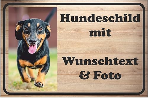 INDIGOS UG - Alu-Dibond Schild - Hund - mit Wunschtext und Foto - Spruch - Design Deko Geschenkidee individuell personalisiert - Hundeschild selbst gestalten