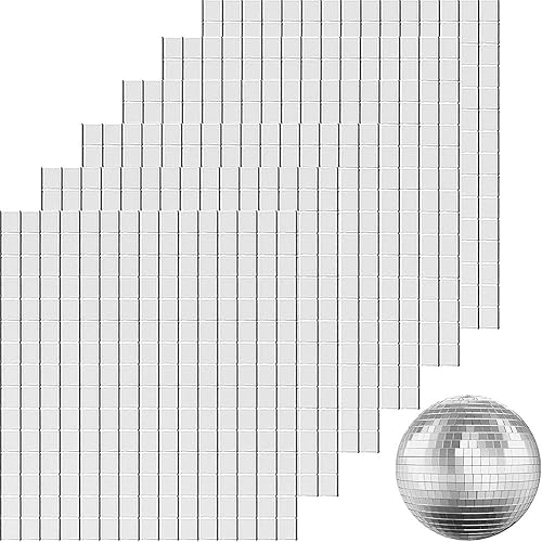 1300 Stück Selbstklebende Spiegel Mosaikfliesen, Silber Glasspiegel Aufkleber/Spiegel Klebefliesen für Diy Discokugel Basteln Dekoration (10x10mm)