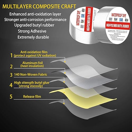 2Stk Butylband Wasserdichtes Klebeband Außen Bitumenband Selbstklebend 5cm x 5m Super Dichtband Wasserdicht Abrieb und Hitzebeständiges für Dachleckage Oberflächenriss Rohrbruch (5 * 5)