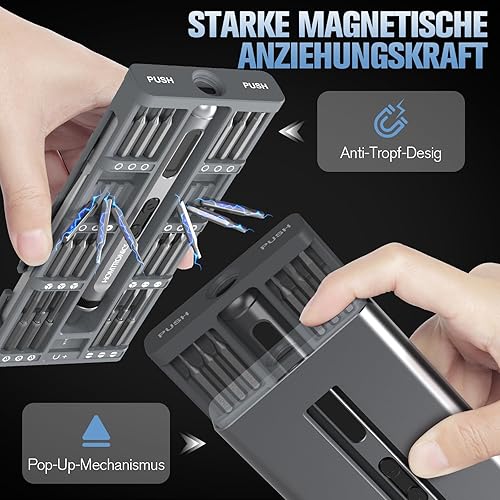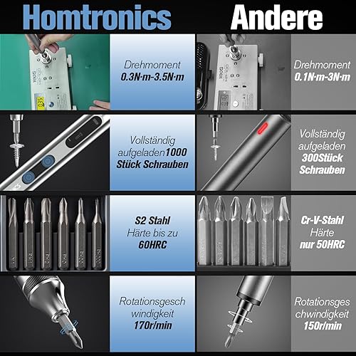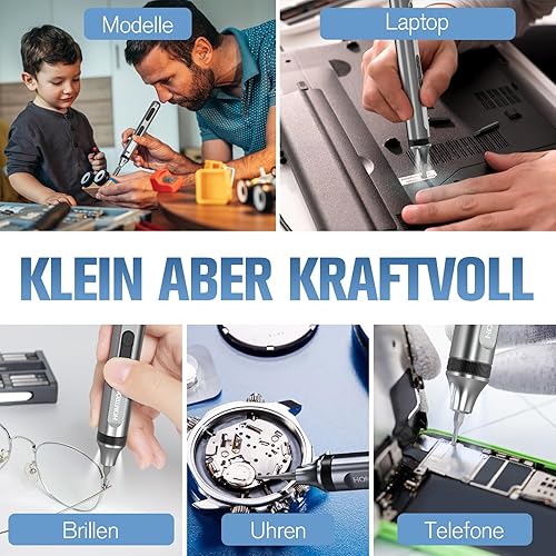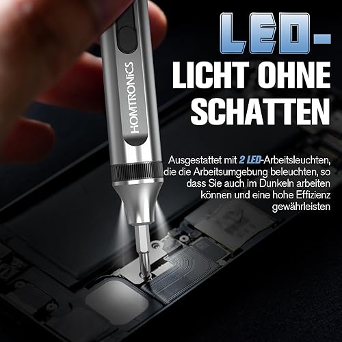 Homtronics Präzision Elektrischer Schraubendreher, [52 in 1] Elektrischer Schraubendreher mit 48 Magnetischen Bits, Mini Elektro Schraubendreher Kit für Reparatur Handy Laptop, Brillen, Uhren, Grau