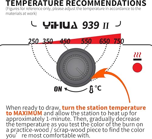 YIHUA 939-II Brandmalerei stift lötkolben set Holzgravur-Bastelset mit einstellbarer Temperatur Holzbrenner Stift, Softgrip-Holzverbrennungsstift, 20 Drahtfedern, 4 Holzstücke für Holz (EU Plug)