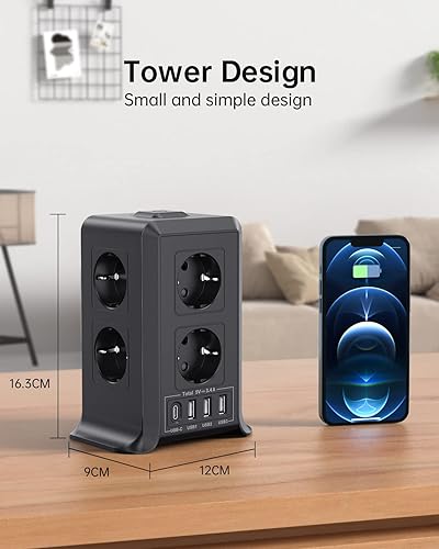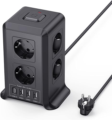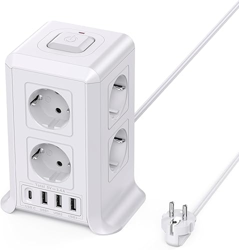 Mehrfachsteckdose mit Schalter, Sameriver 8 Fach Steckdosenleiste Steckerleiste mit 4 USB, Mehrfachstecker Überspannungsschutz, 2M Verlängerungskabel Steckdosenturm für Zuhause,Büro
