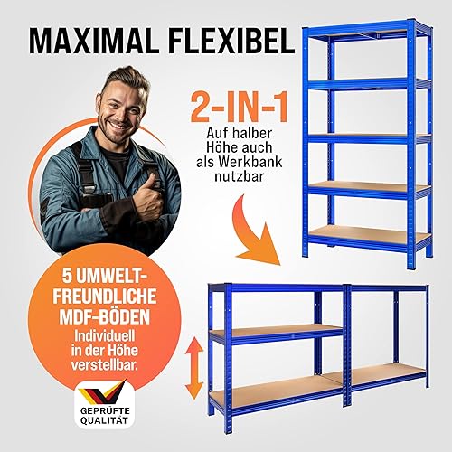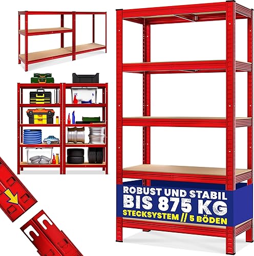 Monzana® Schwerlastregal 180x90x40cm 875kg 5 MDF-Platten Regal Lagerregal Kellerregal Steckregal Werkstattregal