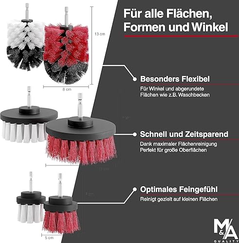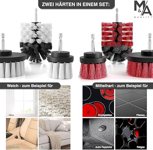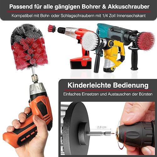 Bürstenaufsatz Akkuschrauber [6er Set] Reinigt universell Auto, Felgen, Polster, Fliesen & mehr I Reinigungsbürste Akkuschrauber I Bürstenaufsatz Bohrmaschine