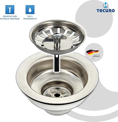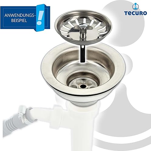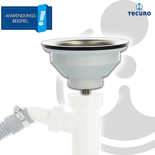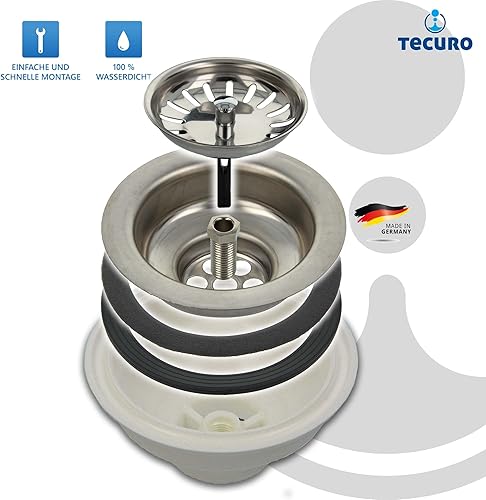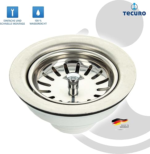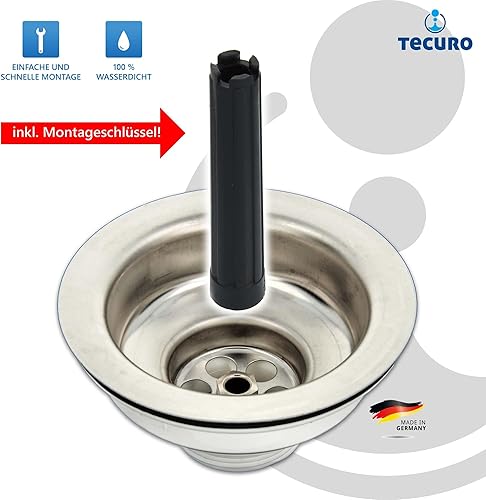 tecuro Küchen-Siebkorbventil 3 1/2 Zoll Ø114 mm Edelstahl & Kunststoff, Komplettset mit Montageschlüssel