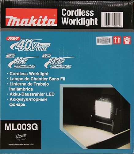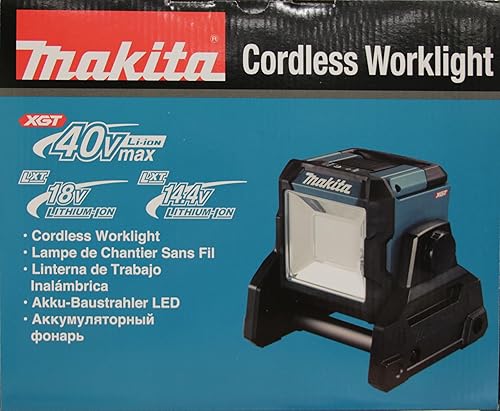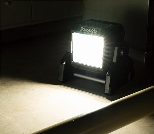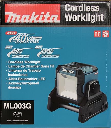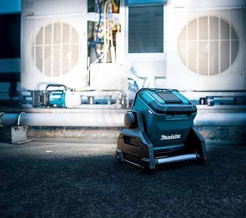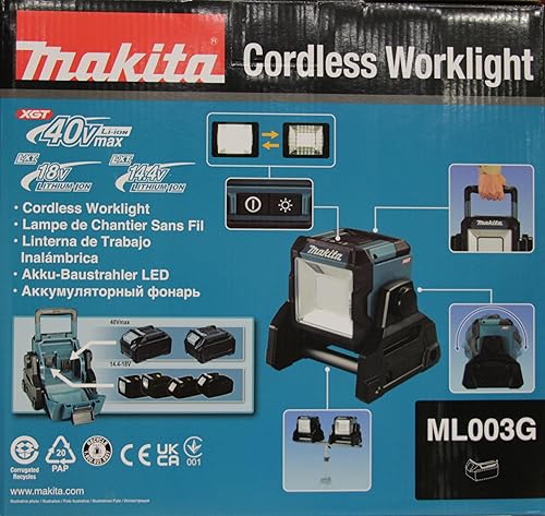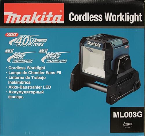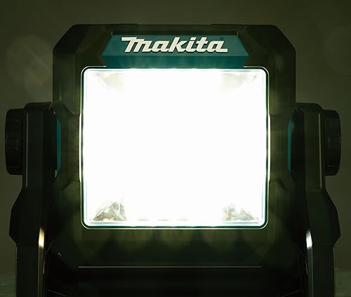 Makita ML003G LED-Akku-Baustrahler 18V-40V max. (ohne Akku & Ladegerät), max. 1100 Lumen, 2 Helligkeitsstufen, Leuchtkörper um 240° schwenkbar, IP65