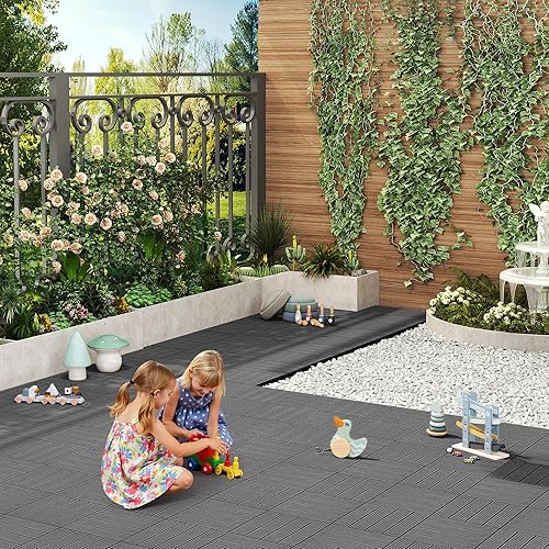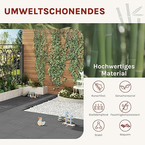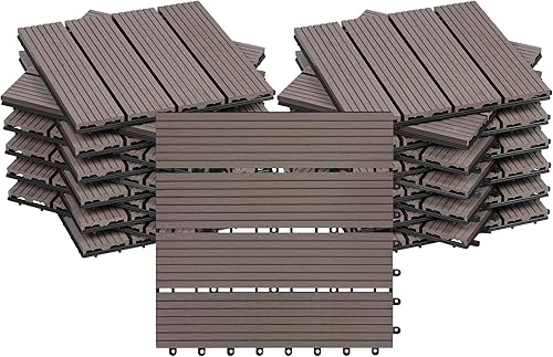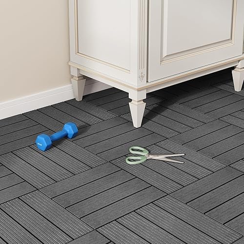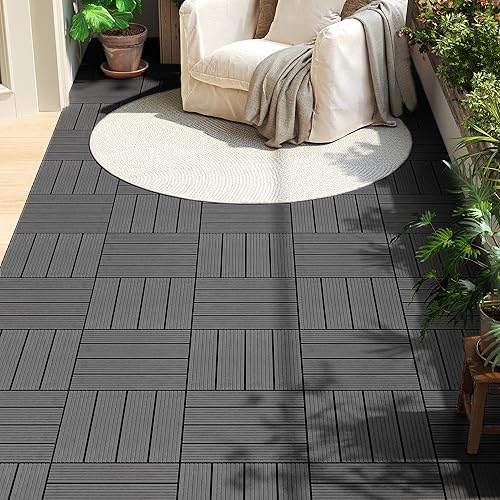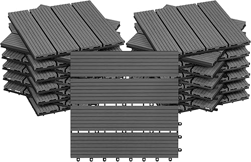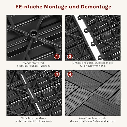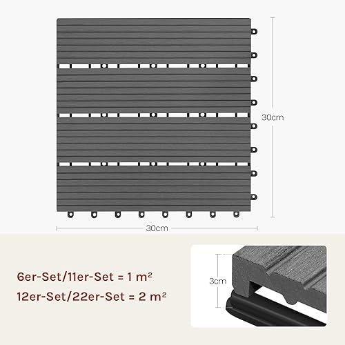 WOLTU WPC Terrassenfliesen Terrassendielen Fliese in Holzoptik Bodenbelag mit klicksystem Anthrazit (11 Stück / 1 m²)
