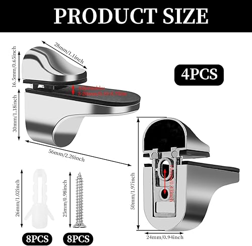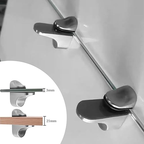 SyiXute 4 Stück Glasbodenträger,Verstellbare Glasregalhalterung,Zinklegierung Spiegelhalterung für Holz- / Glasregale mit Einer Dicke von 3-20 mm