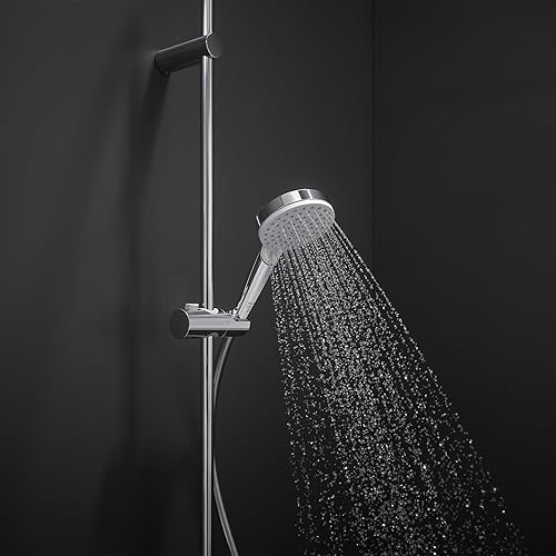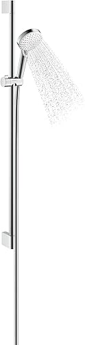 hansgrohe Crometta - Duschset, runder Duschkopf mit Brausestange 90 cm, Duschkopfhalterung und Brauseschlauch 160cm, Duschbrause mit 2 Strahlarten, Weiß/Chrom