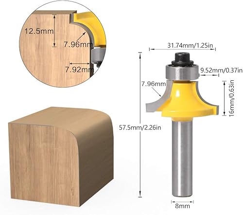 5 Stücke Schranktür-Fräser-Set 8 mm Schaft Rund über Fräser-Bits Holzbearbeitungs-Fräsen-Fräswerkzeug