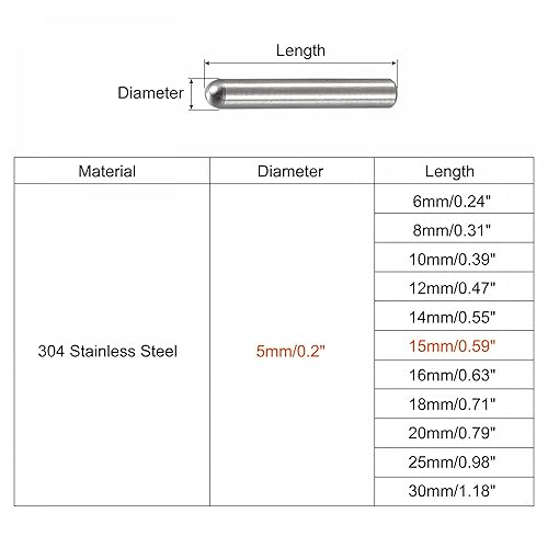 sourcing map 20Stk. 5x15mm Passstifte 304 Edelstahl Rundkopf Flachbefestigungselemente