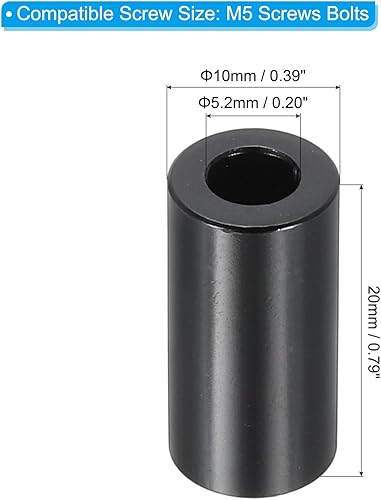 PATIKIL M5 Aluminium Abstandshalter, 6 Stück Metall Abstandshalter Aluminium 5,2 mm ID x 10 mm OD x 20 mm L Aluminium Schraubenabstand Rund für 1/5' oder M5 Schrauben, Schwarz