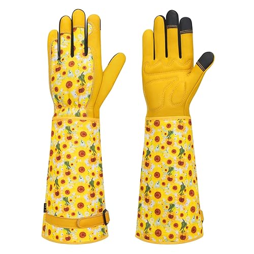 Gartenhandschuhe für Damen und Herren,Dornensicher Gartenhandschuhe Lange,Rosenhandschuhe Beschneiden von Rosen,Schaffell Gartenhandschuhe mit Unterarmschutz,Leder Gartenhandschuhe für Garten oder Hof