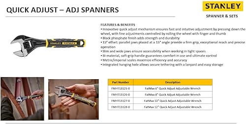 Stanley FatMax verstellbarer Rollgabelschlüssel FMHT13126-0 (8', Bi-Material, mit Schnellöffnungsfunktion, Metrik- und Zoll-Abmessungen, Aufhängeloch zum Aufhängen)