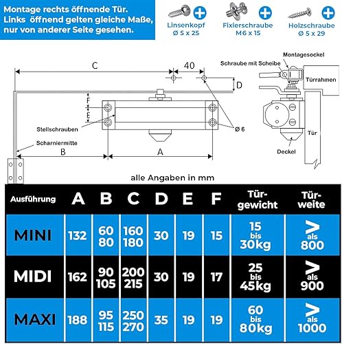 Stahlia Automatischer Türschließer Weiß Türschließer Haustür hydraulisch Innen - Außen Automatik Obentürschließer | MINI Türgewicht 15-30 kg