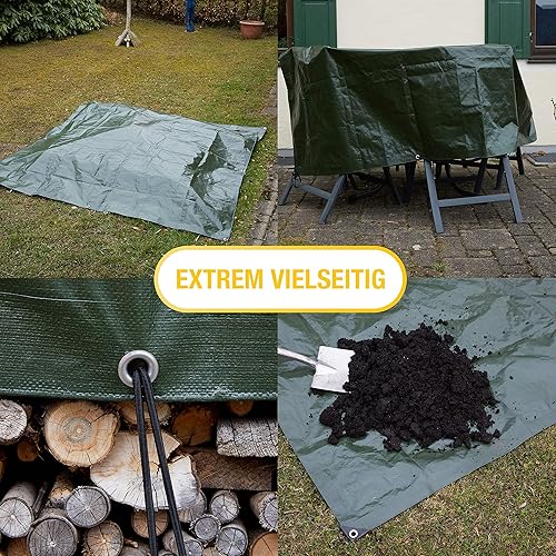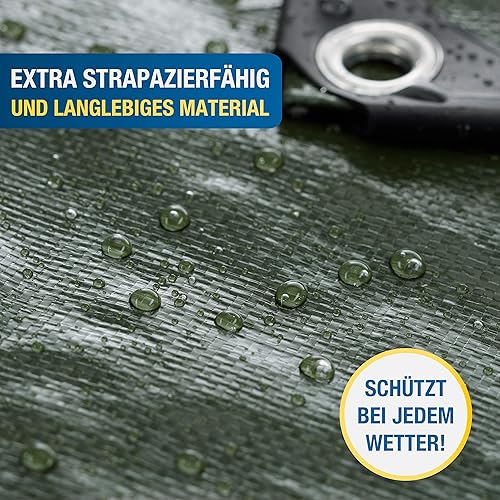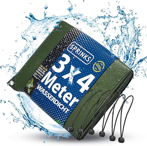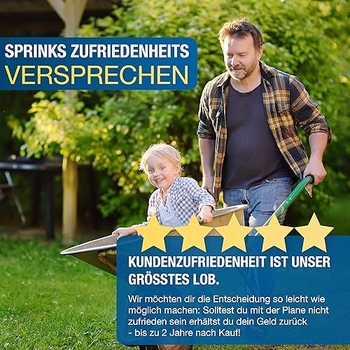 SPRINKS® Abdeckplane Premium 140 g/m² [2x2m] - Robuste Gewebeplane mit Ösen - Plane Wasserdicht und UV Beständig - Tarp Outdoor - Wetterfeste Allzweckplane inkl. 6 Planenspanner