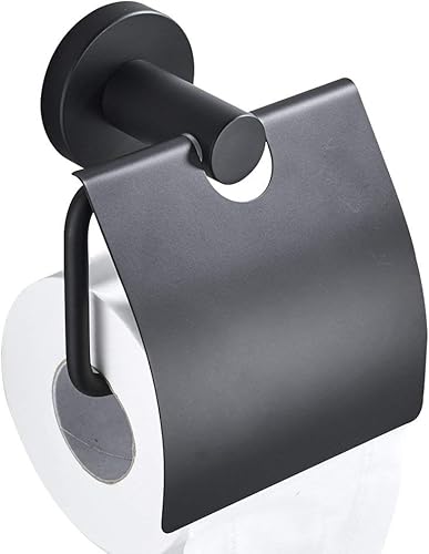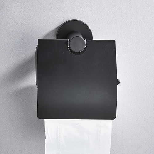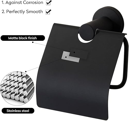 CASEWIND Toilettenpapierhalter Schwarz, Klorollenhalter mit Deckel, Antik Klopapierhalter mit Bohren Wandmontage Edelstahl Matt für WC Nostalgie