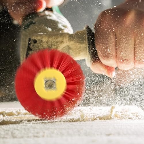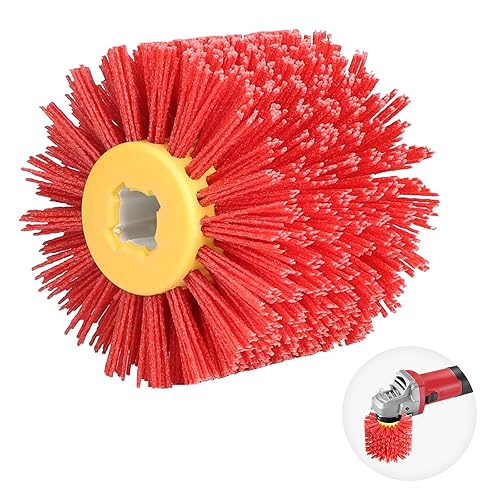 EXLECO Nylonbürste #80 Körnung Schleifbürste für Satiniermaschine φ19mm Borstenbürste Satinierwalze Drahtziehrad Pinsel Polierbürste Schleifwalze Bürstenwalze für Holzverarbeitung Bürstenschleifer Rot