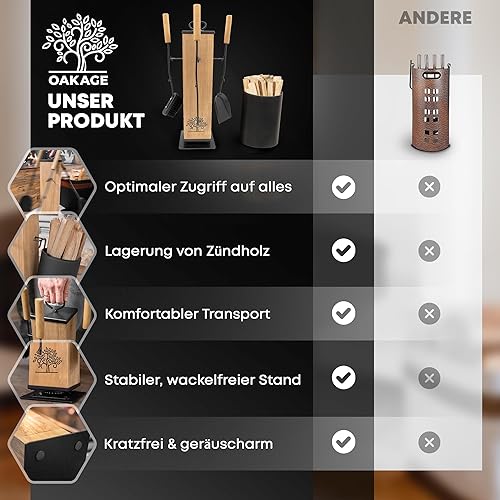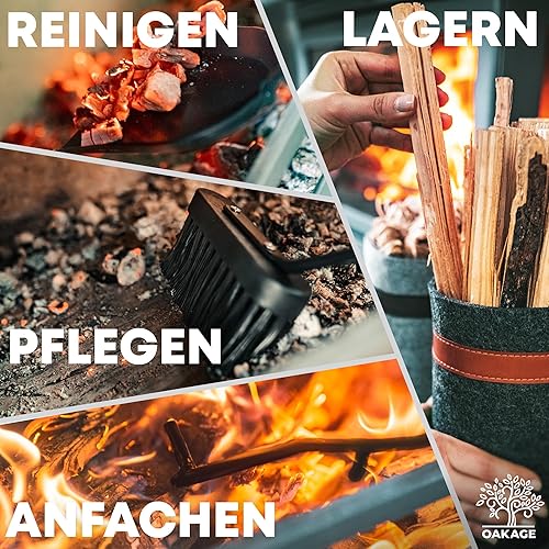 OAKAGE Kaminbesteck LuxeLeather – Stilvolles Design trifft maximale Funktionalität (Basic)