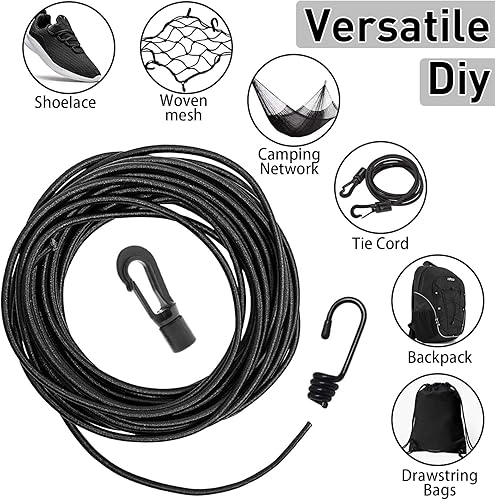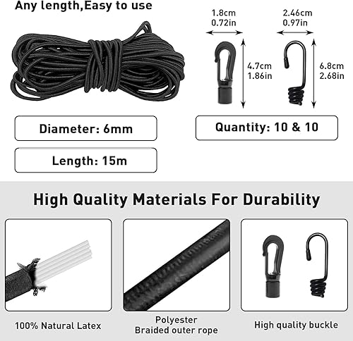 Spanngummi mit Haken,Gummiseil 6mm 15m Schwarz,DIY Expander mit Haken, Gepäckspanner für Auto & Fahrrad Elastisches Expander Seil Gummischnur Planenspanner Seil Spannseil mit Haken Zubehör