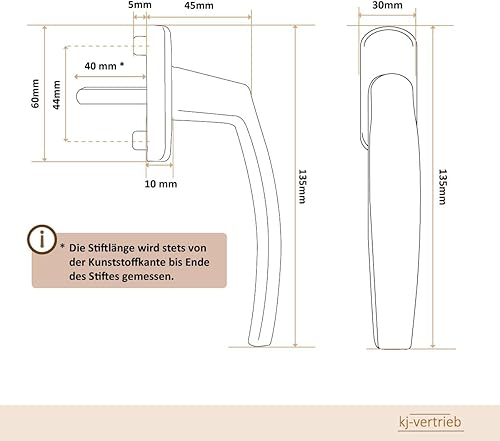 Premium Aluminium Fenstergriff Victory - Metall Sockel, Farbe:Gold F4, Stiftlänge:45mm