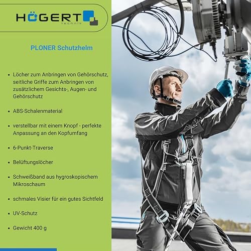 Högert Technik - PLONER Schutzhelm gelb uni | Bauarbeiterhelm Schutzhelm Bauhelm Schutzhelme Helm | EN 397 | verstellbar mit einem Knopf | Belüftungslöcher | Schweißband | UV-Schutz;