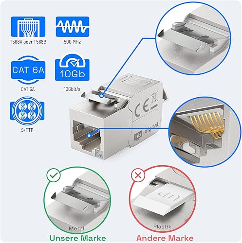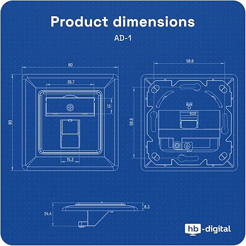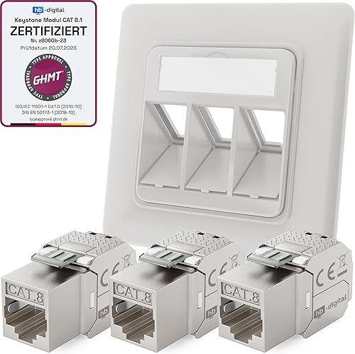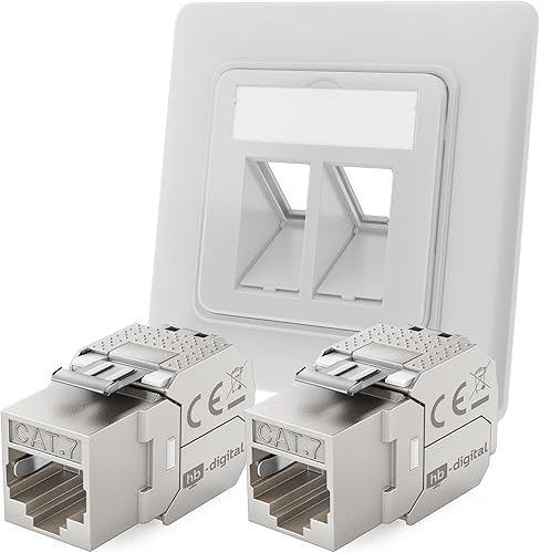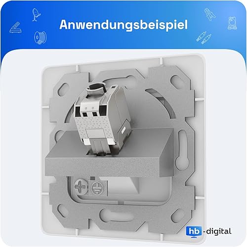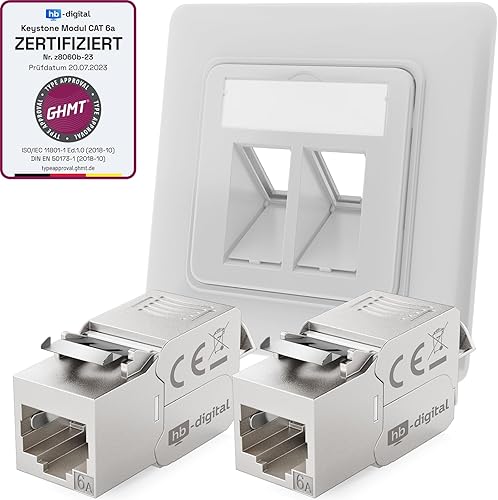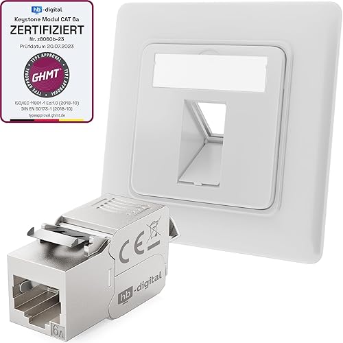 hb-digital 1-Port CAT 8 Netzwerkdose unterputz RAL9003 + 1x GHMT zertifiziertes CAT 8 Keystone RJ45 Modul LAN Ethernet Keystone Dose Buchse Einbaubuchse max. 40 Gbit/s STP - Signalweiß