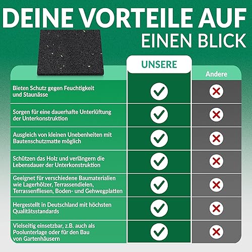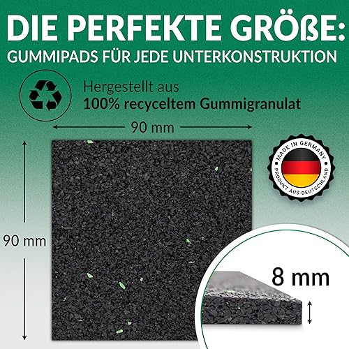 25 Stück 8 mm 90 x 90 mm Terrassenpad, Terrassenpads aus Gummi – Unterlagepads für die Unterkonstruktion ihrer Terrassen Balkon oder Gartenhütte