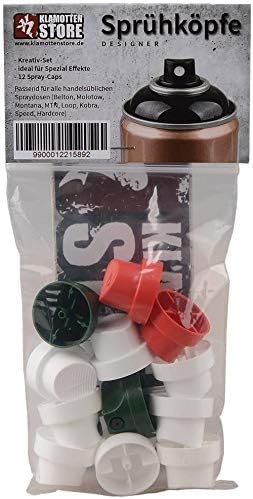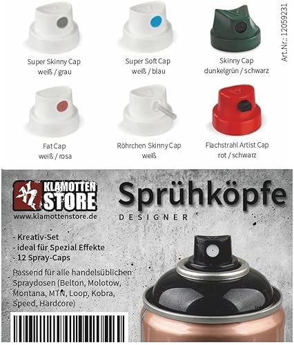 KLAMOTTEN STORE Sprühkopf Aufsatz für Spraydose Farbspray 12 Ersatzcaps Designer Skinny bis Fatcap, für saubere Linien schnelles Füllen, Spritzeffekte, Kalligrafie