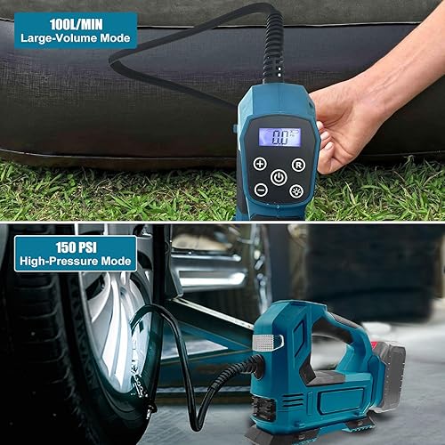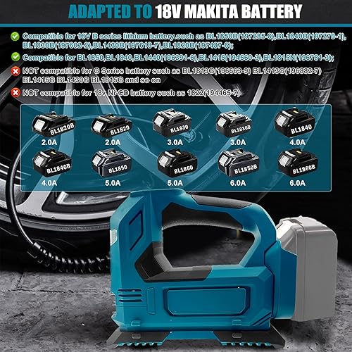 Akku-Kompressor für Makita 18V Akku (ohne Akku, ohne Ladegerät), Tragbare LED-Licht Handheld Luftpumpe mit digitalem Manometer, Elektrische Luftkompressor für Autos, Motorräder, Fahrräder, Sportbälle