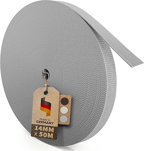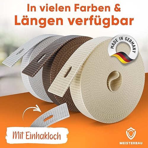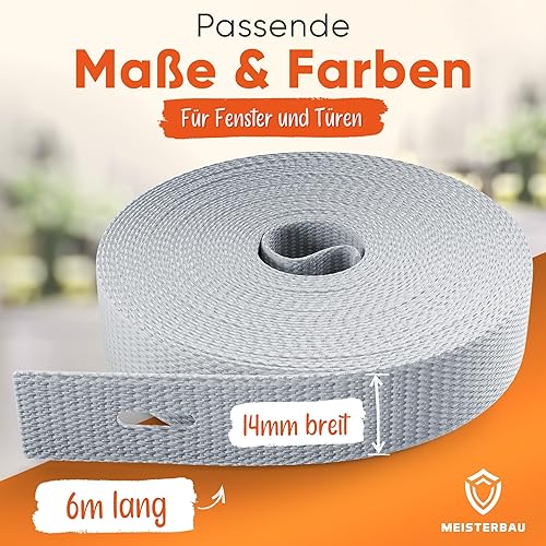 MEISTERBAU - 7m Rolladengurt 23mm [Made in Germany] - Rolladenband für Rollläden an Türen und Fenster - Extrem Reißfest & UV-Stabil - Rollladengurt mit starken Kanten (Grau, 7m lang - 23mm breit)