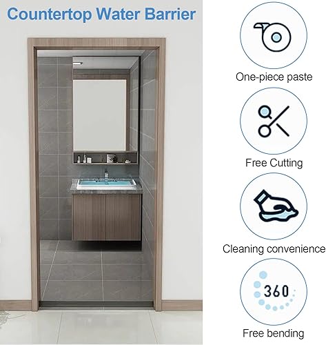 6M*20MM Schwallschutzleiste Dusche Selbstklebend, mit Silikonkautschuk Schwallschutzleiste Selbstklebend, Schwallschutz Trennung von Nass und Trocken, für Küchen, Bäder, Waschbecken (Transparent)