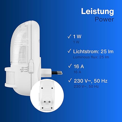 REV Nachtlicht - Steckdosenlampe mit Bewegungsmelder, Erfassungsbereich 110° bis zu 5m, LED Nachtlicht Steckdose, weiß