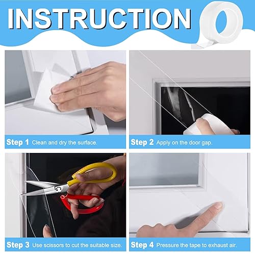 wordmouk Dichtungsband Selbstklebend für Türen Fenster Türdichtungsstreifen 5cmx10m Wasserdicht Transparent Wetterfeste Haustürdichtung Innen Unten Windschutzstreifen Zugluftstopper Türbodendichtung