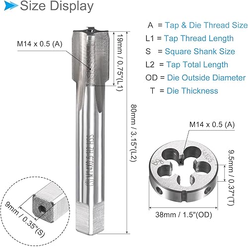 CoCud Gewindebohrer und Matrize Set M14 x 0.5 Gewinde Metrisch Hochleistungsstahl Maschine Schraube Gewindebohrer und Runde Matrize Gerät Kit - 1Set